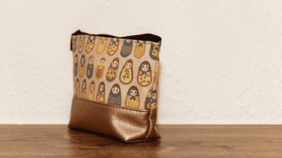 A neszeszer mindkét oldalát mintás anyag díszíti. Két oldala eltérő mintájú lehet. Belül egy térrel rendelkezik.